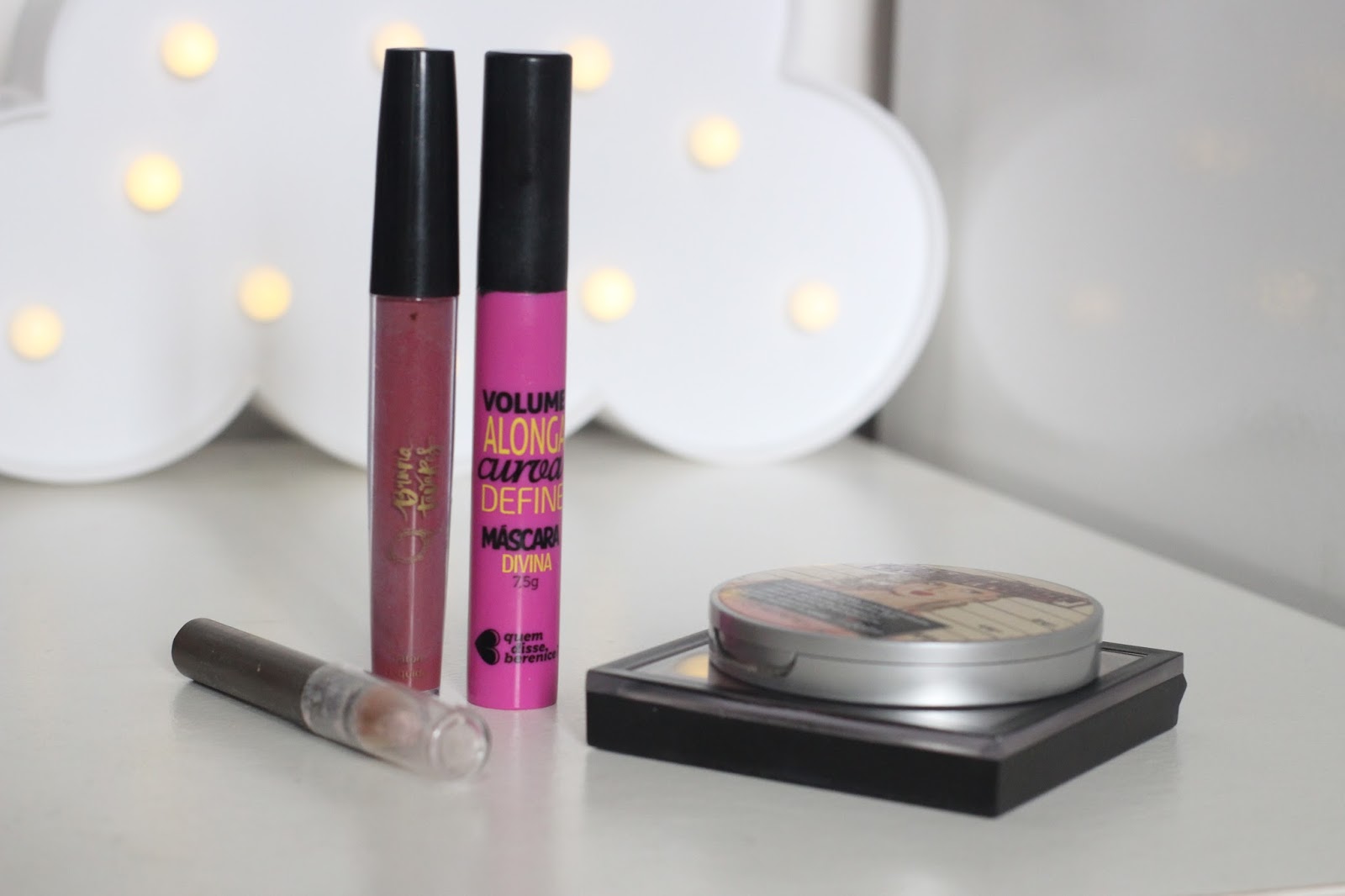 Olá, tudo bem? Primeiro e tudo, adorei as fotos no post, ficaram simples e bonitas. As maquiagens que você leva são bem úteis na hora do retoque. Pode faltar tudo na minha bolsa, menos um batom e um brilho. rsrs)