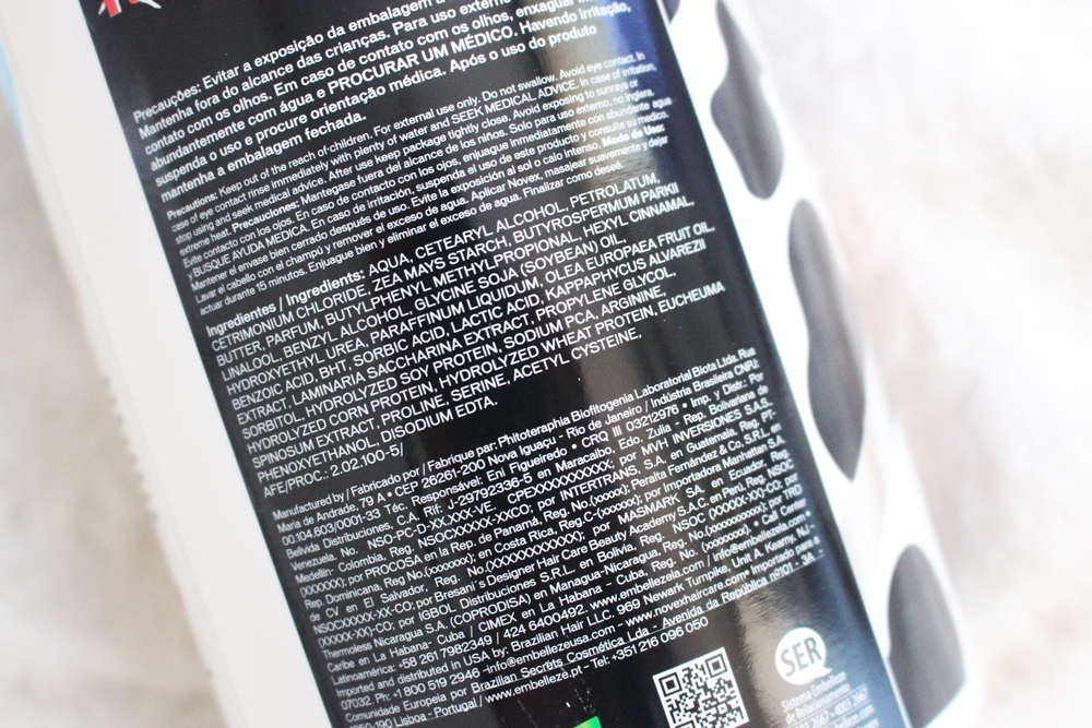 A textura dele é bem molinha, você consegue facilmente espalhar pelos fios sem muito esforço, sabe? E a promessa é que o pote de 1 kg dure até 42 aplicações.