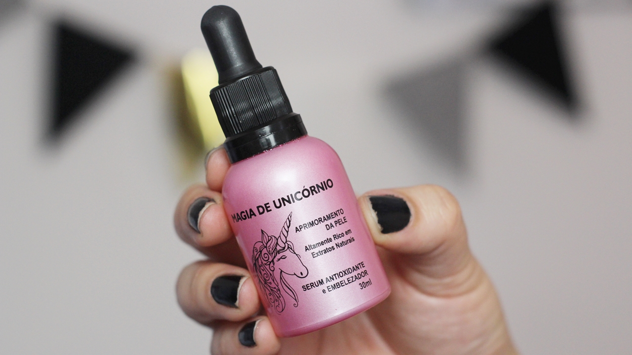 Tenho usado o sérum Magia de Unicórnio como primer e tenho gostado bastante. Pingo algumas gotinhas no rosto, espalho com movimentos de dentro para fora (dê olho no envelhecimento da pele, meu povo) e ele deixa a pele com um viço bonito, lisinha, bem preparada para as camadas de maquiagem que faço. O glitter vai sumindo aos pouquinhos, não se preocupe, viu?
